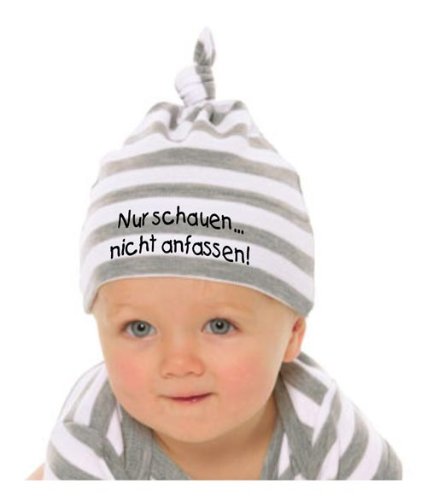 Baby Mütze bedruckt mit NUR SCHAUEN - NICHT ANFASSEN / in 9 Farben