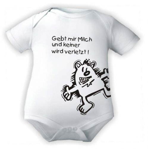 Babybody mit Druck GEBT MIR MILCH UND KEINER WIRD VERLETZT / kurz-und langarm / Gr. 50 - 104