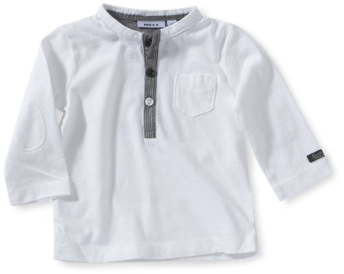 cooles Langarmshirt / Longsleeve in weiß, schöner Druck auf dem Rücken, Rundhalsausschnitt, Knopfleiste in grau und weiß mit Knöpfen in diversen Farben, kleine Brusttasche, Aufnäher auf den Ellenbogen, gerader Schnitt