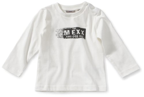 schönes Langarmshirt in off White, mit Logoprint vorn, Rundhals, an einer Schulter zu knöpfen zum bequemen An- und Ausziehen