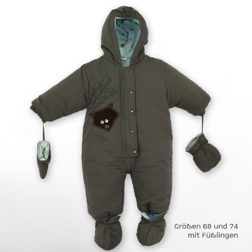 Die anknöpfbaren Füßlinge in den Größen 68 und 74 halten die empfindlichen Zehchen schön warm der Windfang in den Größen 80 und 86 bietet Schutz vor Wind und Schnee und auch die Fäustlinge mit Klettverschlusslasche sind am Anzug fixiert ... praktisch, stimmt´s?
