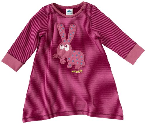Süßes Kleid für Mädchen von Eat Ants by Sanetta. Das gestreifte Jersey Kleid im Babydoll Stil besteht aus reiner Baumwolle und ist besonders angenehm zu tragen. Im Brustbereich ist ein niedliches Häschen aufgenäht und an der Schulter lässt es sich mit Druckknöpfen öffnen.