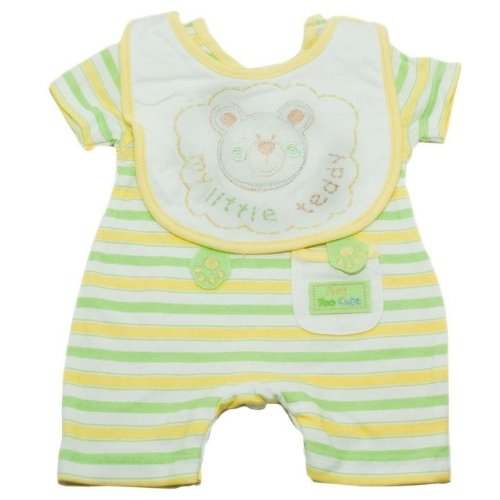 Babybekleidung Set Strampler und Lätzchen für Jungen und Mädchen, Bärenmuster, für Allergiker geeignet, (gelb/grün)